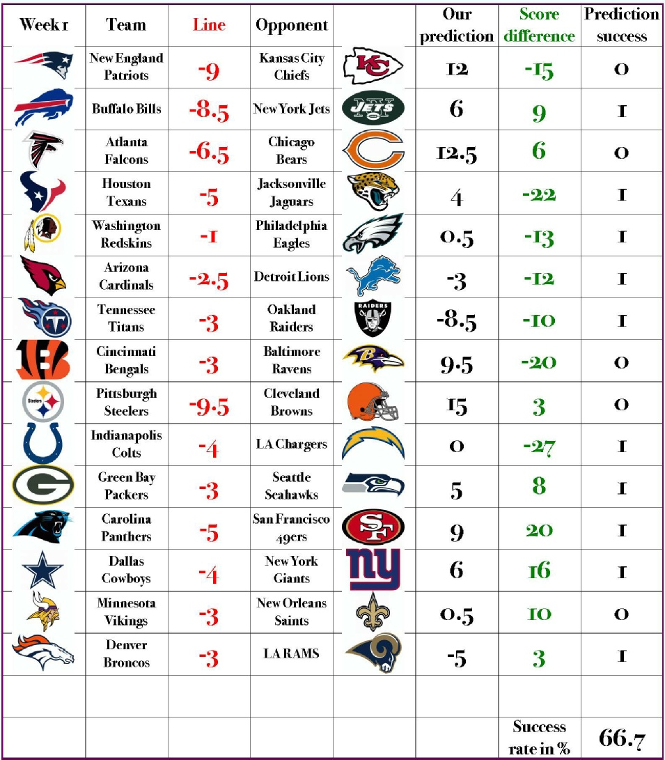 The bellow predictions are according SUNDAY Pointspread.