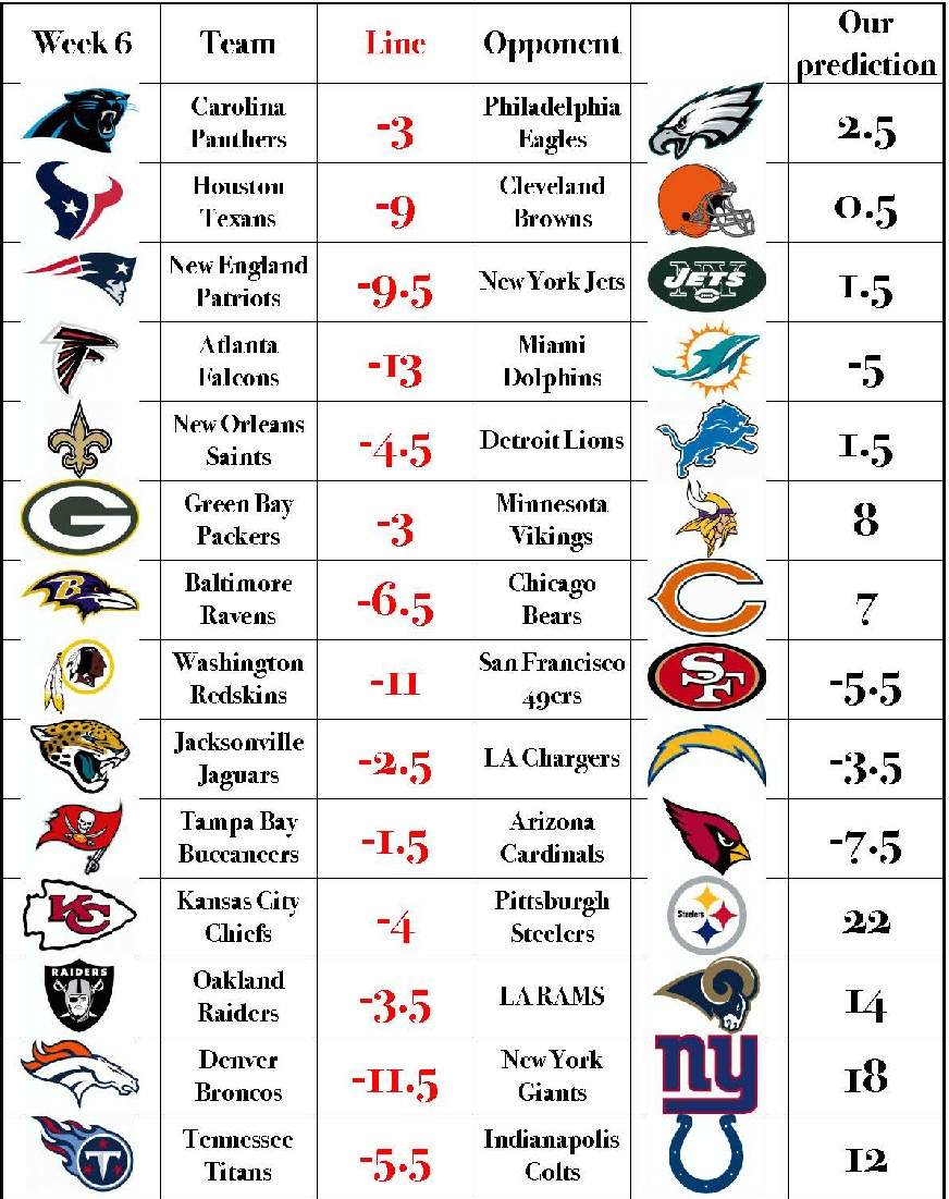 The bellow predictions are according SUNDAY Pointspread.